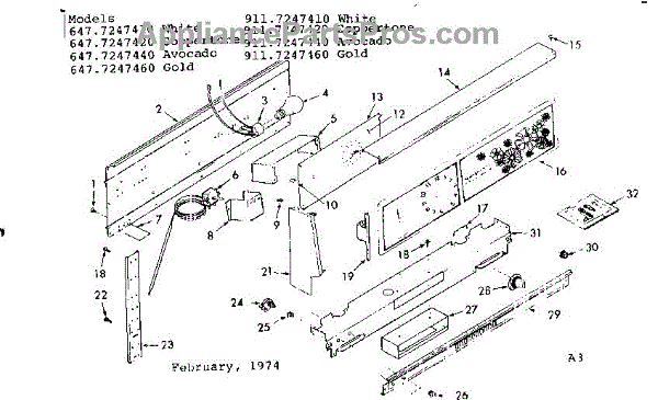 Parts for Kenmore 911.7247460 (9117247460, 911 7247460): Backguard Section Parts