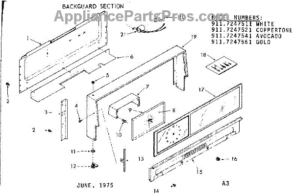 Parts for Kenmore 911.7247521 (9117247521, 911 7247521): Backguard Section Parts