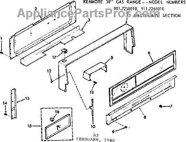 Parts for Kenmore 911.7258010 (9117258010, 911 7258010): Backguard Section Parts