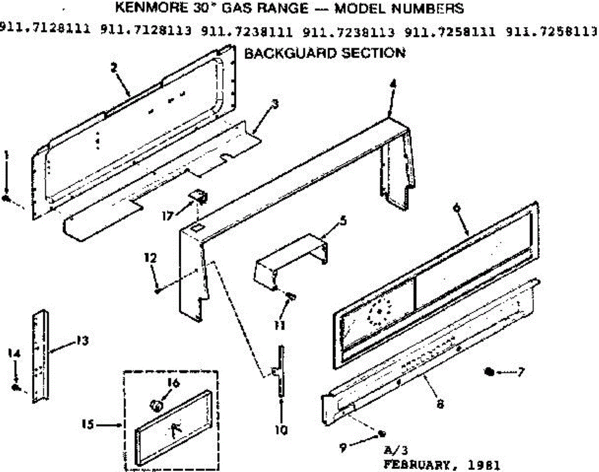 Parts for Kenmore 911.7258111 (9117258111, 911 7258111): Backguard Section Parts