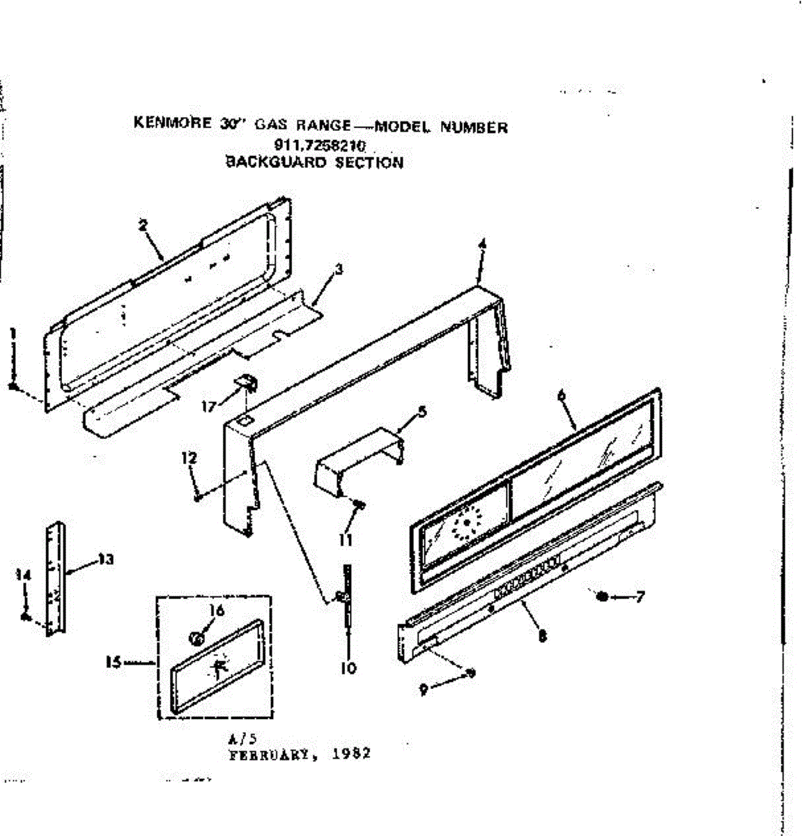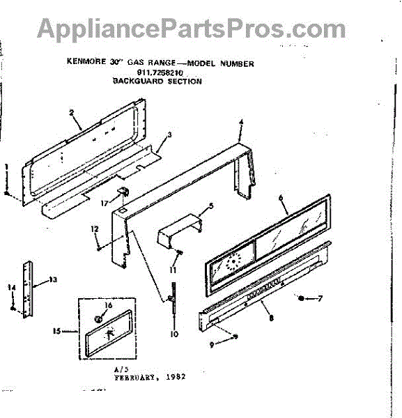 Parts for Kenmore 911.7258210 (9117258210, 911 7258210): Backguard Section Parts
