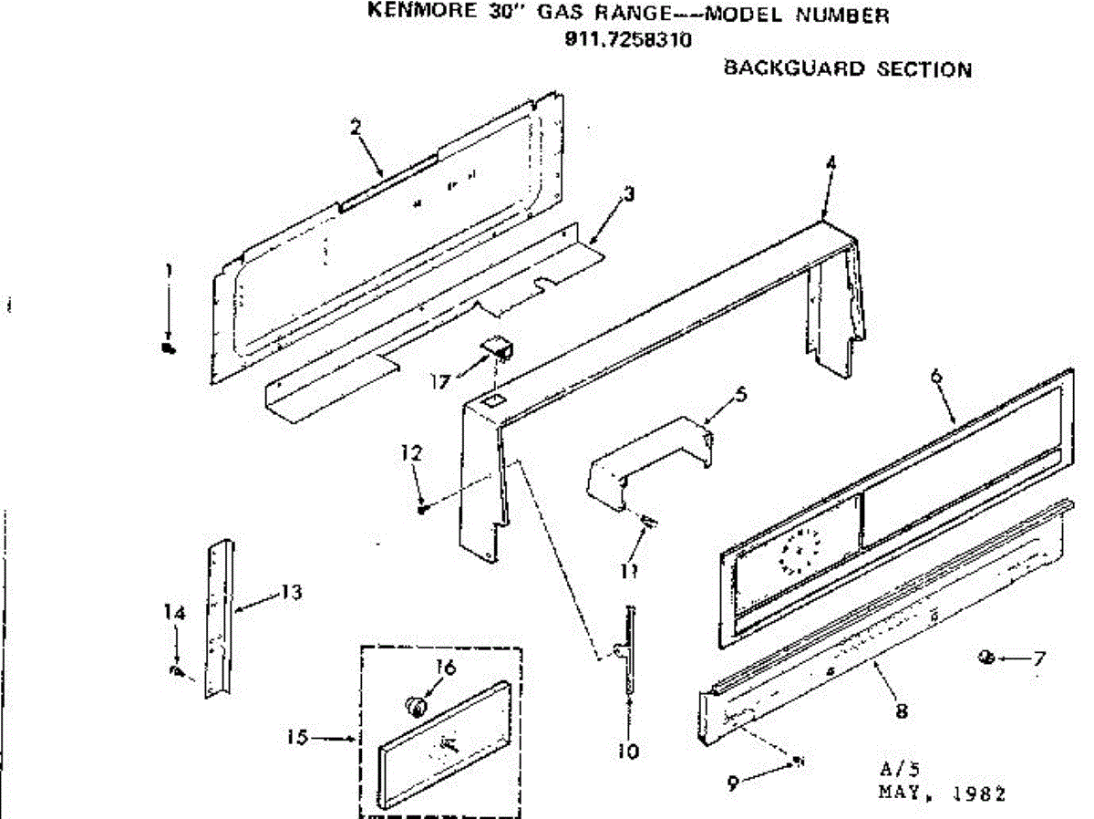 Parts for Kenmore 911.7258310 (9117258310, 911 7258310): Backguard Section Parts