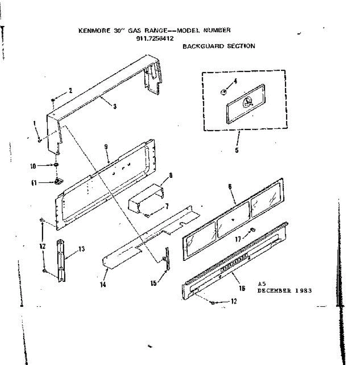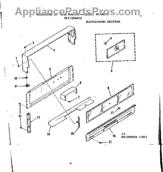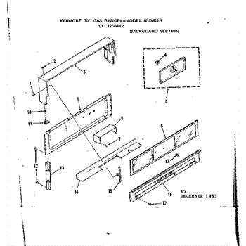 Parts for Kenmore 911.7258412 (9117258412, 911 7258412): Backguard Section Parts