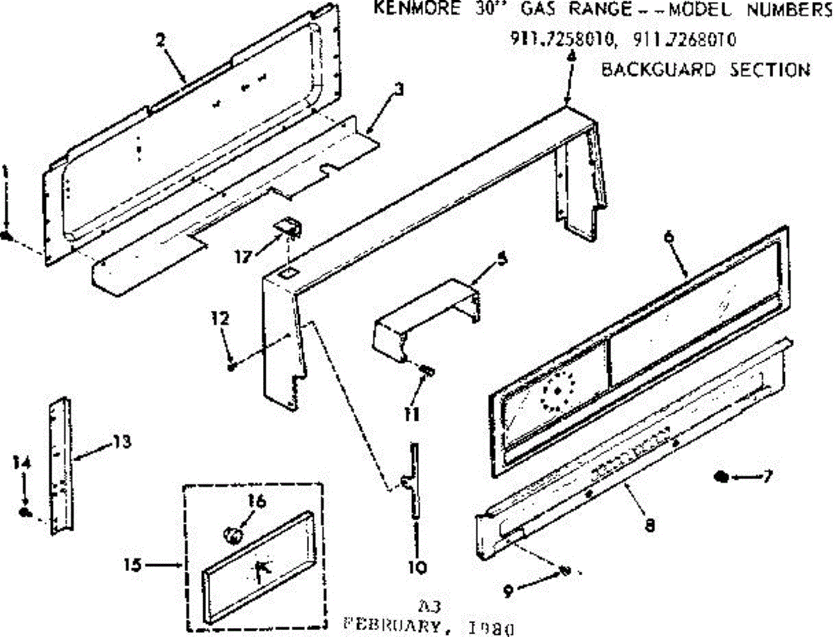 Parts for Kenmore 911.7268010 (9117268010, 911 7268010): Backguard Section Parts