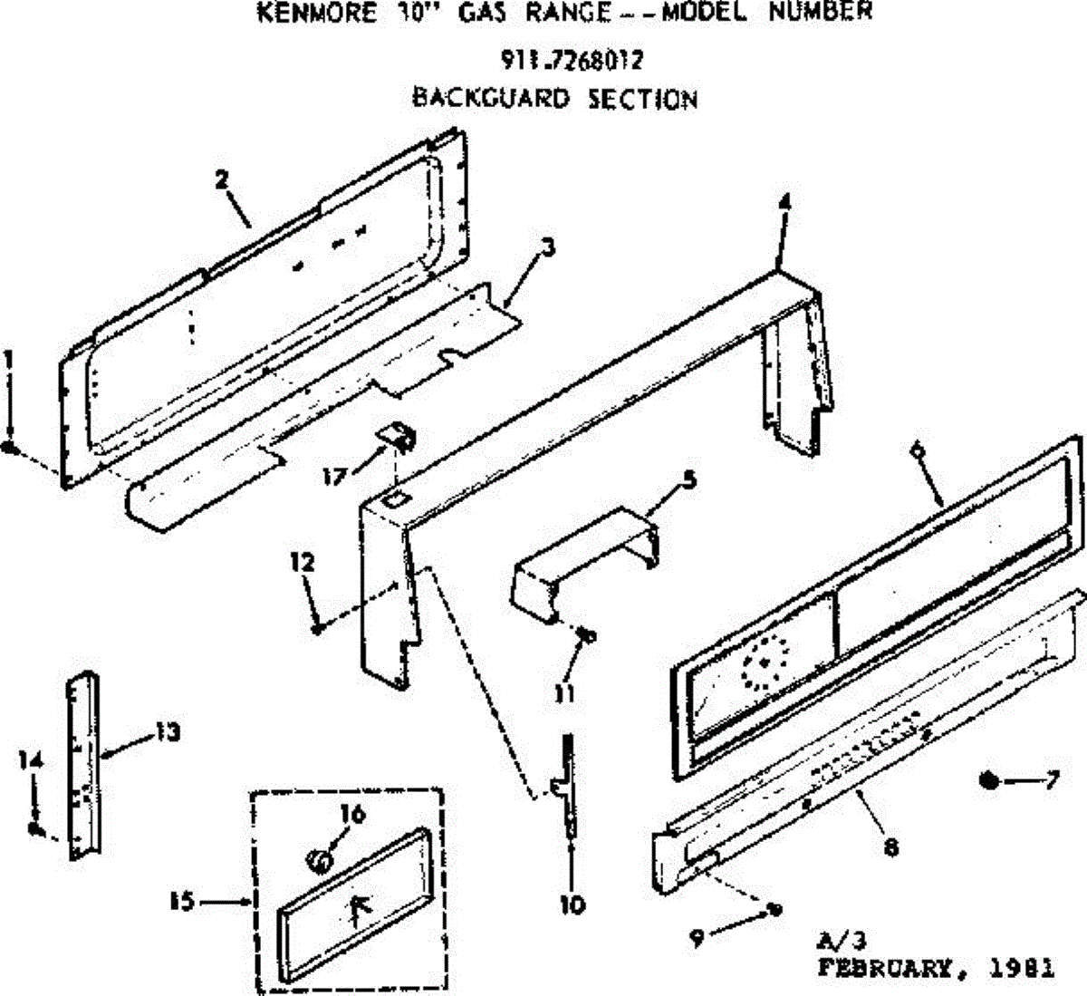 Parts for Kenmore 911.7268012 (9117268012, 911 7268012): Backguard Section Parts