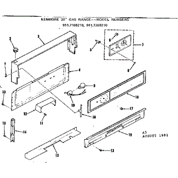Parts for Kenmore 911.7268210 (9117268210, 911 7268210): Backguard Section Parts