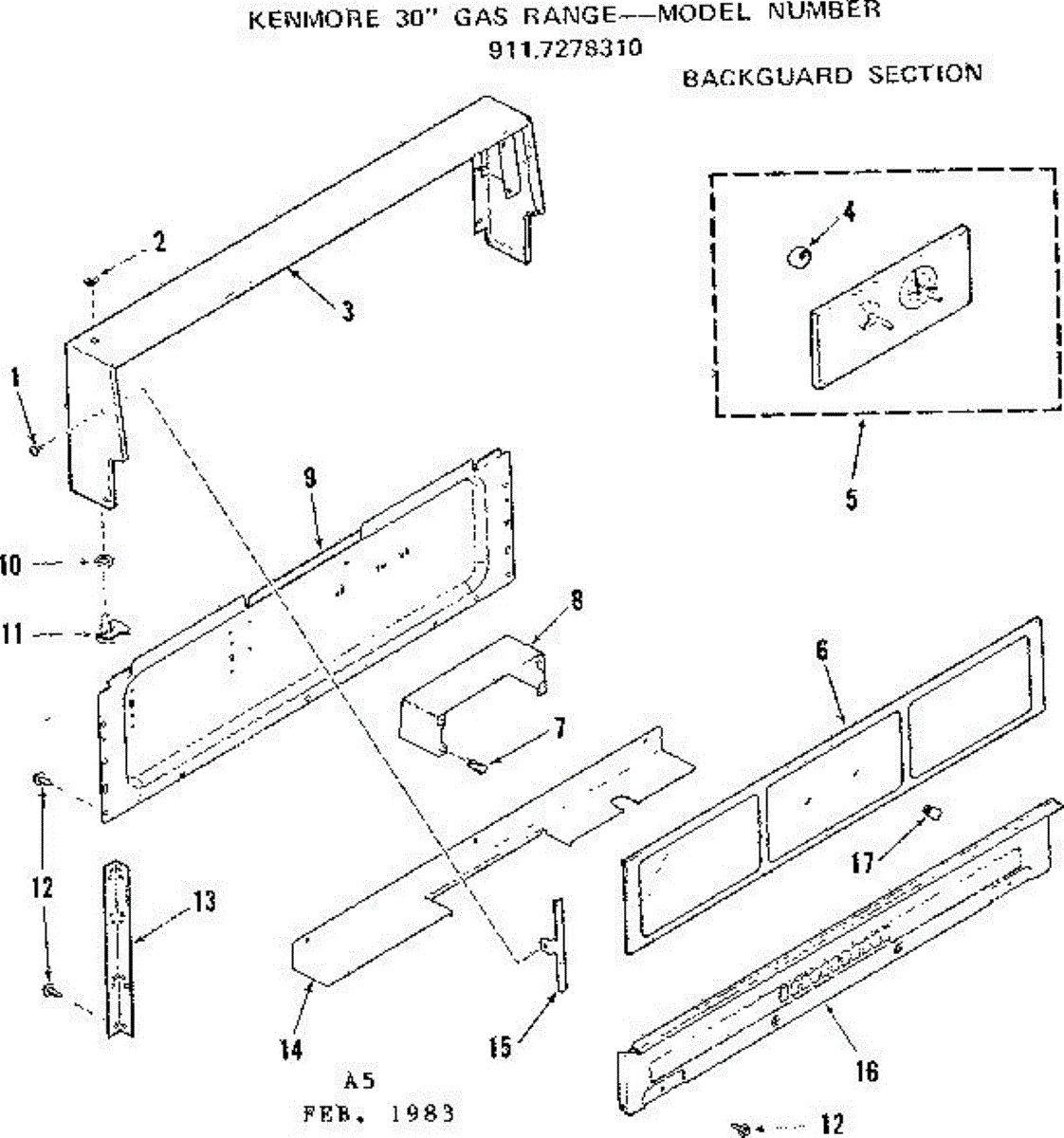Parts for Kenmore 911.7278310 (9117278310, 911 7278310): Backguard Section Parts
