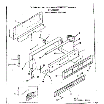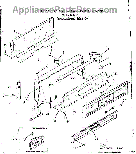 Parts for Kenmore 911.7298311 (9117298311, 911 7298311): Backguard Section Parts