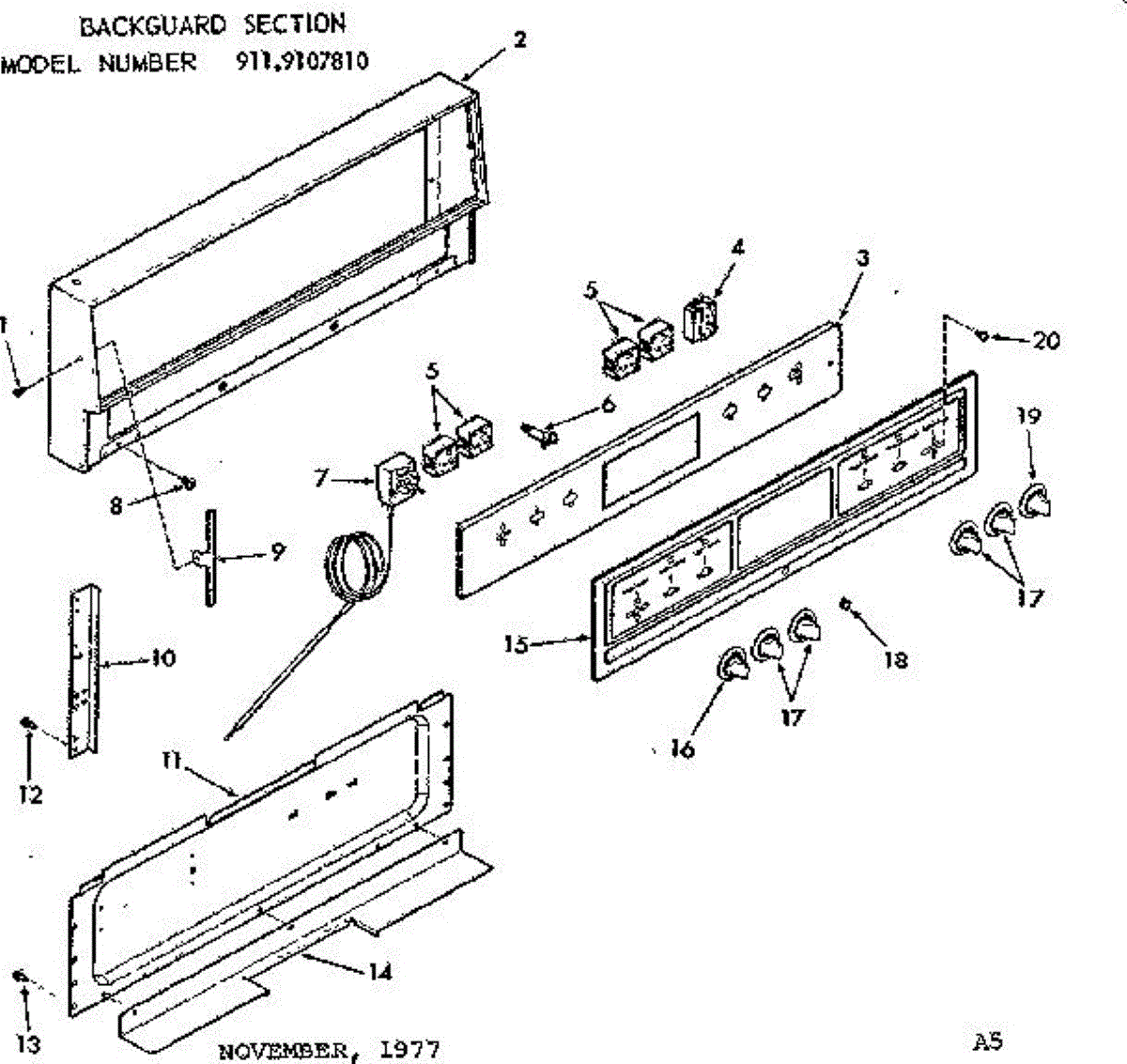 Parts for Kenmore 911.9107810 (9119107810, 911 9107810): Backguard Section Parts
