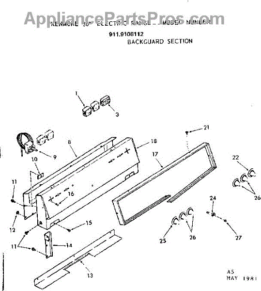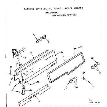 Parts for Kenmore 911.9108112 (9119108112, 911 9108112): Backguard Section Parts