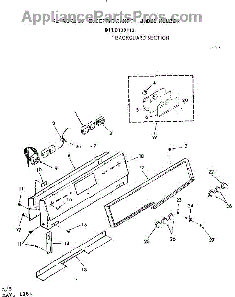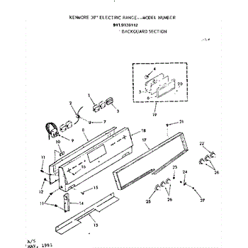 Parts for Kenmore 911.9138112 (9119138112, 911 9138112): Backguard Section Parts