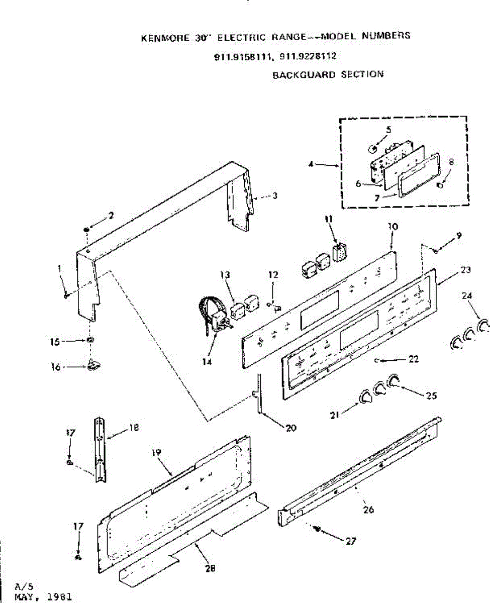Parts for Kenmore 911.9158111 (9119158111, 911 9158111): Backguard Section Parts