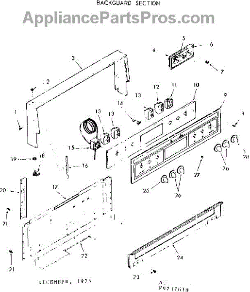 Parts for Kenmore 911.9237640 (9119237640, 911 9237640): Backguard Section Parts