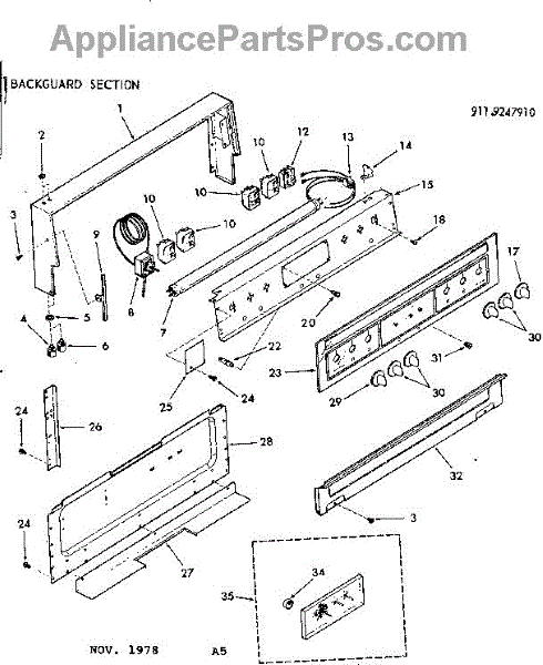 Parts for Kenmore 911.9247910 (9119247910, 911 9247910): Backguard Section Parts
