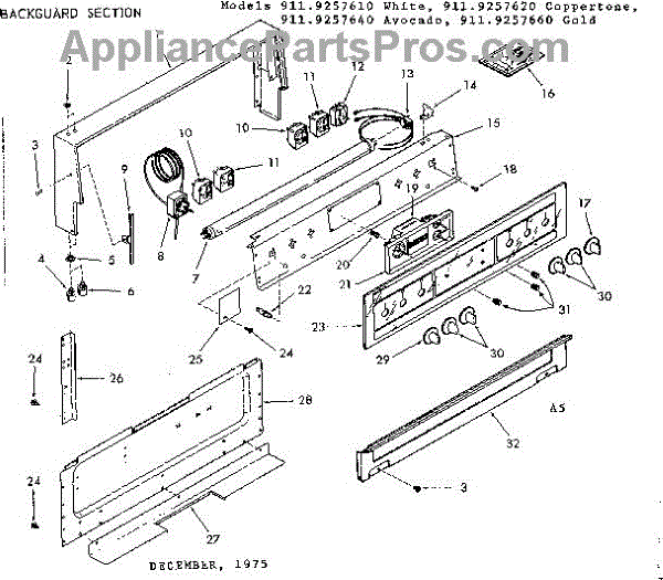Parts for Kenmore 911.9257640 (9119257640, 911 9257640): Backguard Section Parts