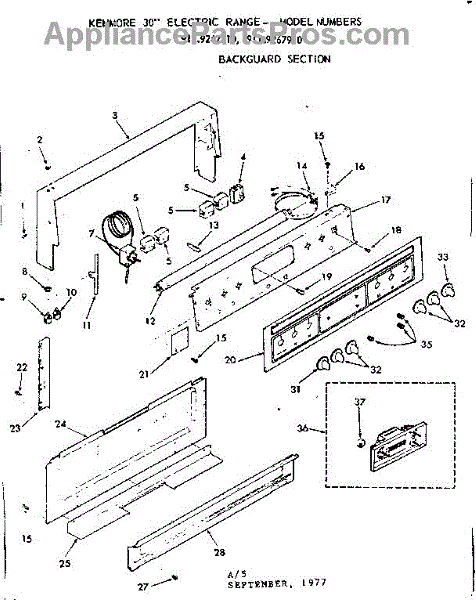 Parts for Kenmore 911.9267810 (9119267810, 911 9267810): Backguard Section Parts