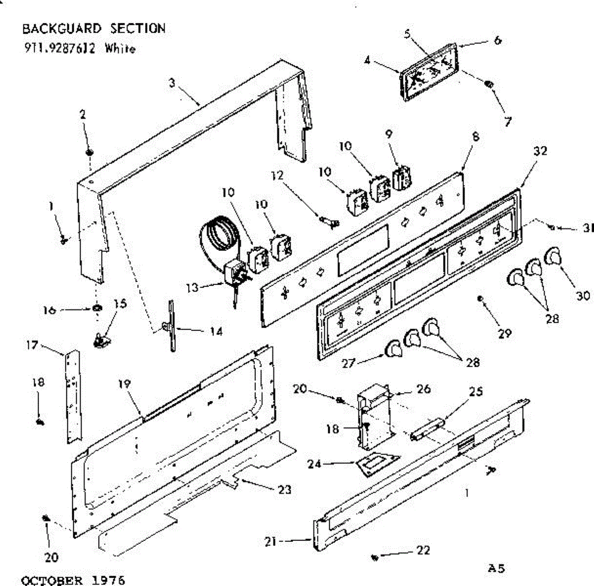 Parts for Kenmore 911.9287612 (9119287612, 911 9287612): Backguard Section Parts