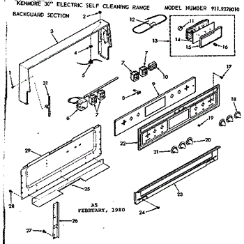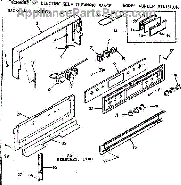 Parts for Kenmore 911.9328010 (9119328010, 911 9328010): Backguard Section Parts