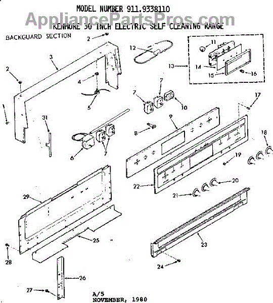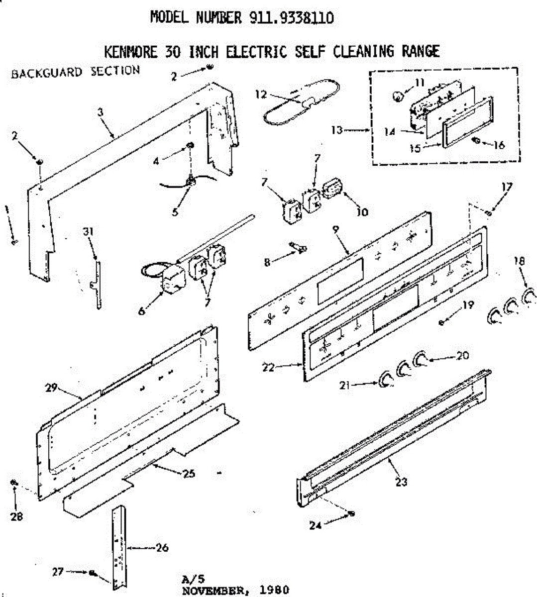 Parts for Kenmore 911.9338110 (9119338110, 911 9338110): Backguard Section Parts