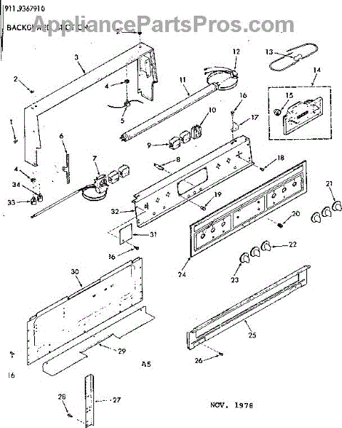 Parts for Kenmore 911.9367910 (9119367910, 911 9367910): Backguard Section Parts