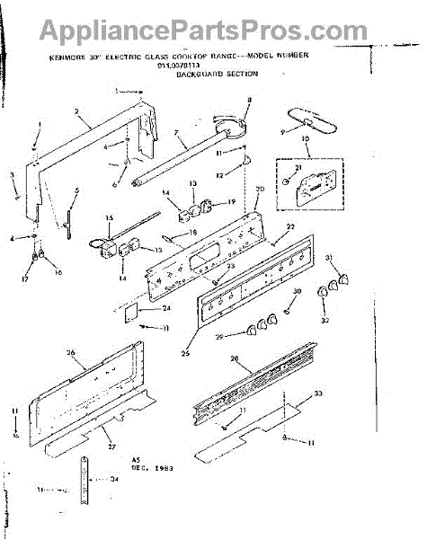 Parts for Kenmore 911.9378113 (9119378113, 911 9378113): Backguard Section Parts