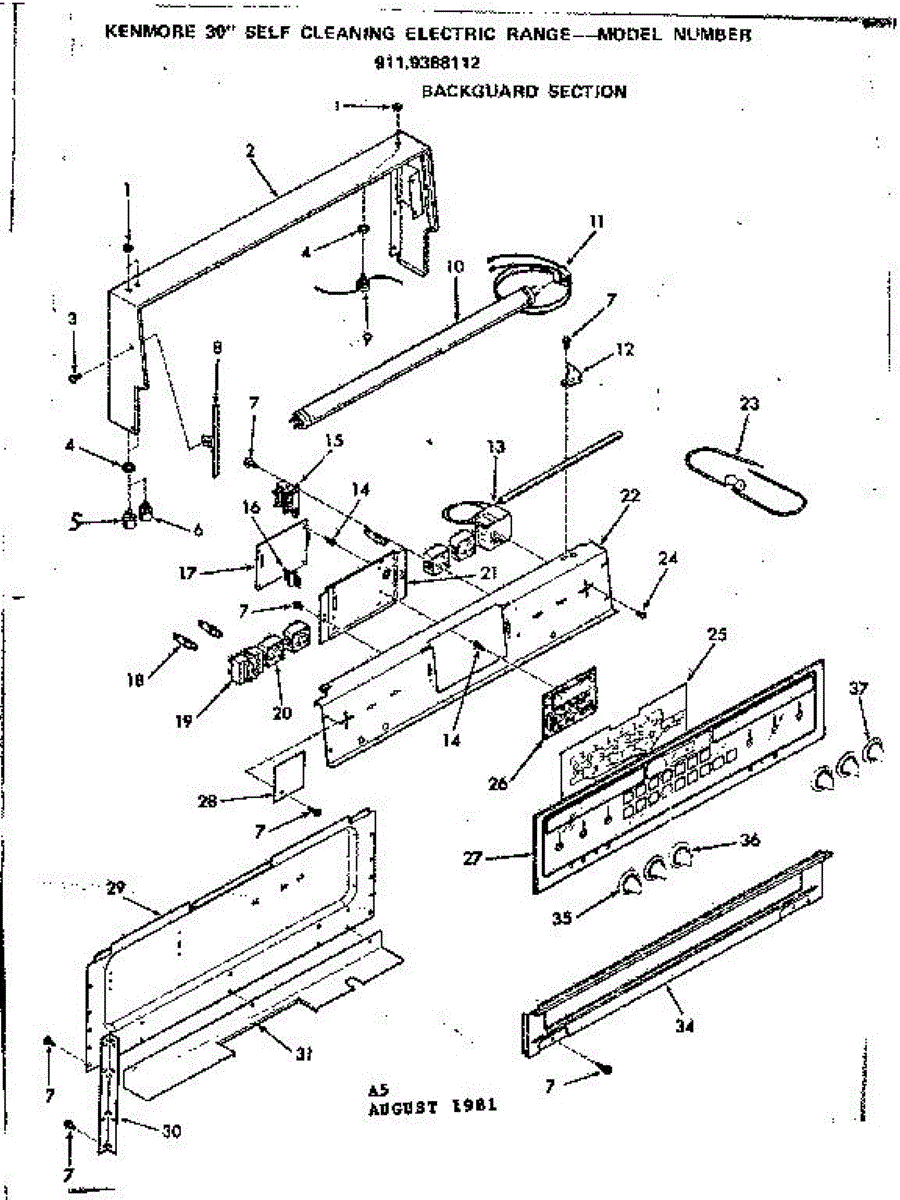 Parts for Kenmore 911.9388112 (9119388112, 911 9388112): Backguard Section Parts