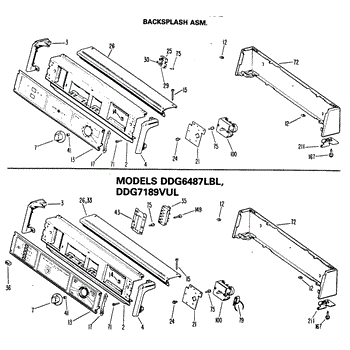 Parts for Ge DDG6487LBL: 02 - Backsplash Asm. Parts