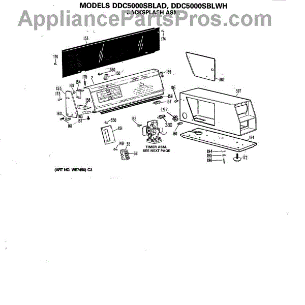 Parts for Ge DDC5000SBLWH: 01 - Backsplash Asm. Parts