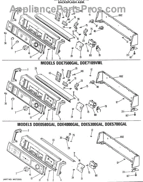 Parts for Ge DDE4000GAL: 01 - Backsplash Asm. Parts