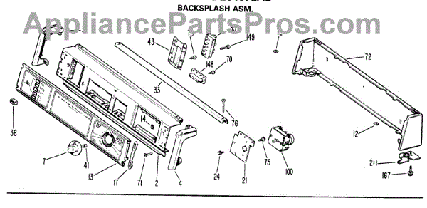 Parts for Ge DDE6407LAL: 01 - Backsplash Asm. Parts