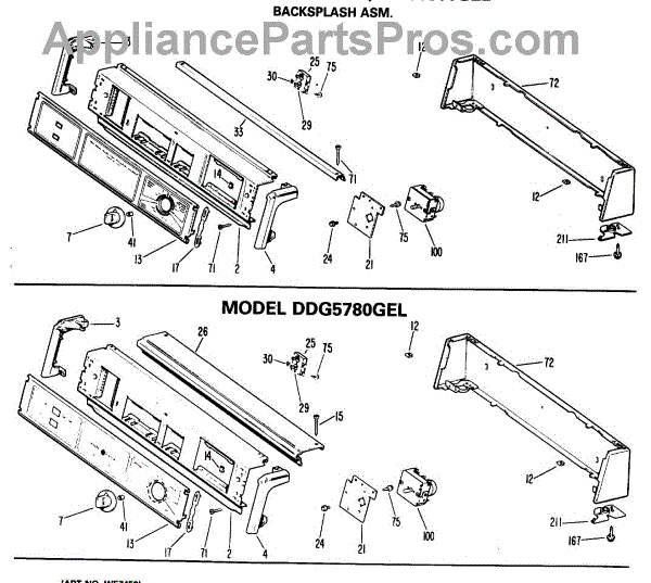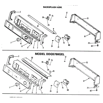 Parts for Ge DDG5780GEL: 01 - Backsplash Asm. Parts