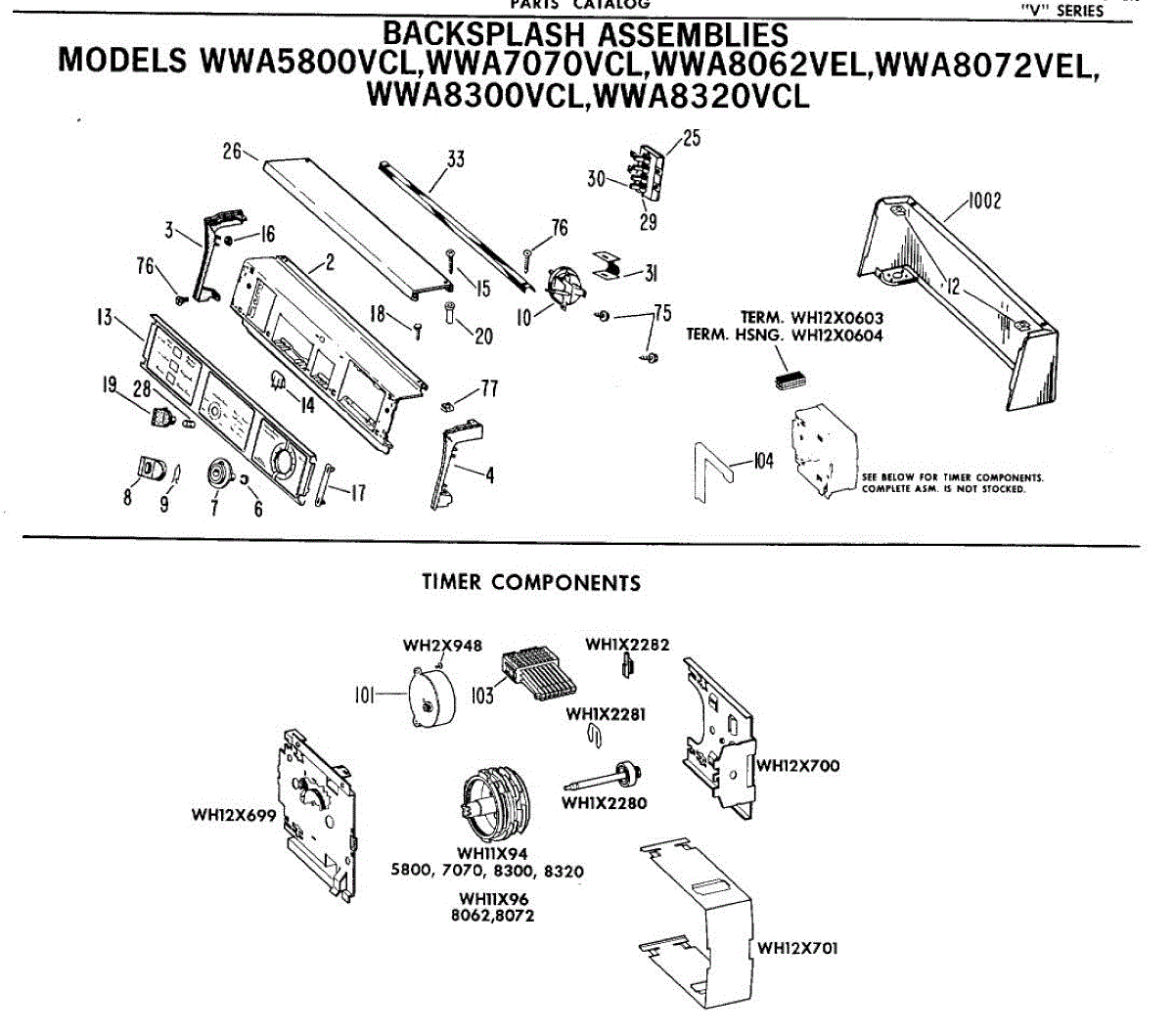 Washer timer mounting bracket secures the timer control to the console panel. Replace if bracket is bent, cracked, or broken causing timer misalignment.