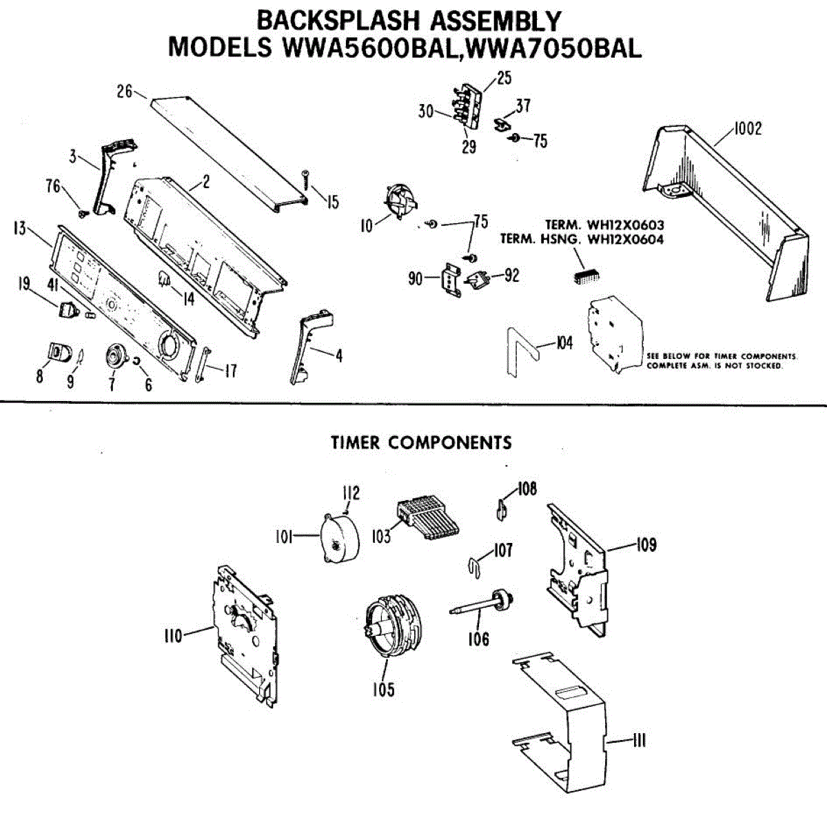 Parts for Ge WWA7050BAL: 02 - Backsplash Assembly Parts