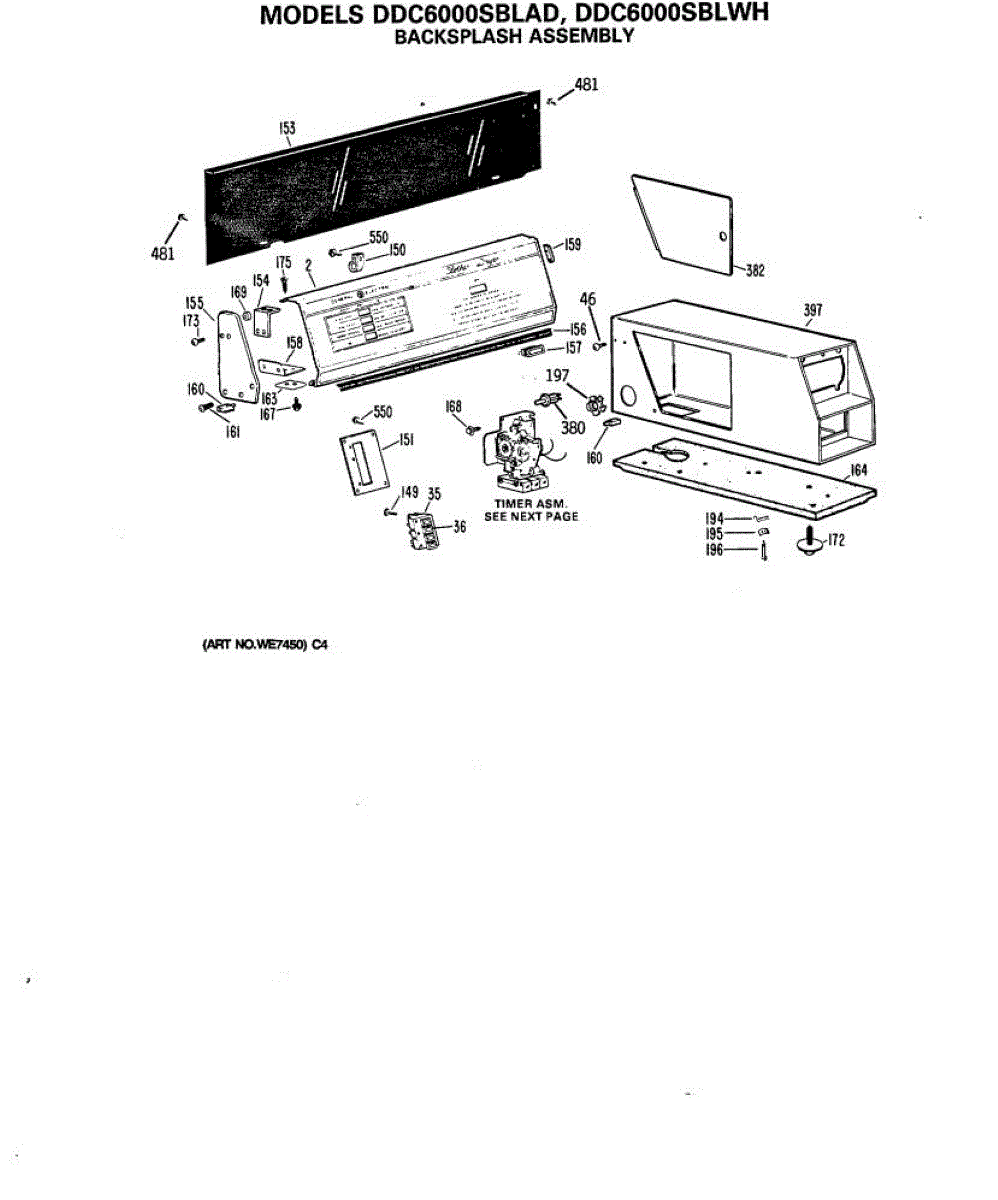 Parts for Ge DDC6000SBLWH: 01 - Backsplash Assembly Parts
