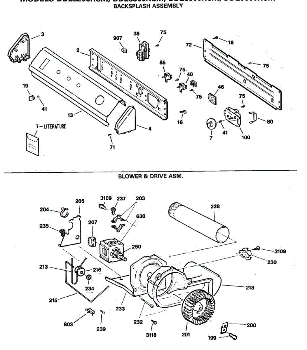 Parts for Ge DDE9500RCM: 01 - Backsplash Assembly Parts