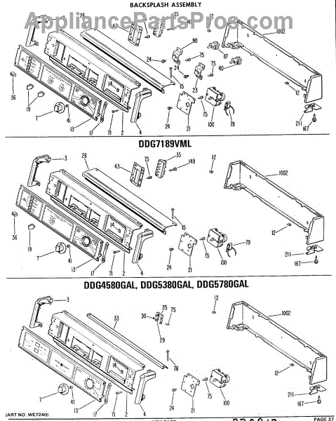 Parts for Ge DDG5380GAL: 01 - Backsplash Assembly Parts