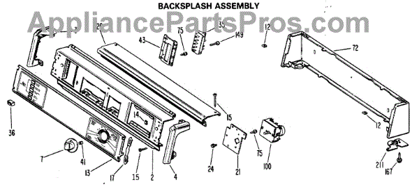 Parts for Ge DDG7288MXL: 01 - Backsplash Assembly Parts