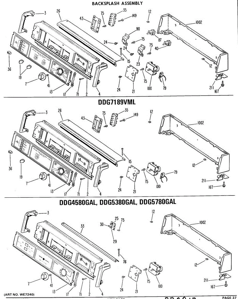 Parts for Ge DDG7980GAL: 01 - Backsplash Assembly Parts