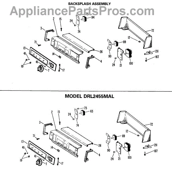 Parts for Ge DRL2455MAL: 01 - Backsplash Assembly Parts