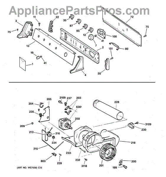 The Blower Wheel is an OEM replacement part for GE dryers. It has a role in the air circulation within the dryer, aiding in the even and efficient drying of clothes. The blower wheel, connected to the motor, helps in expelling the moist air out of the dryer through the exhaust vent during the drying cycle. Causes of a malfunctioning blower wheel are typically wear and tear from regular use, the accumulation of lint or debris, or damage to the wheel’s fins or central hub, which can impact its rotation and air circulation capability. Symptoms of a bad Blower Wheel include: