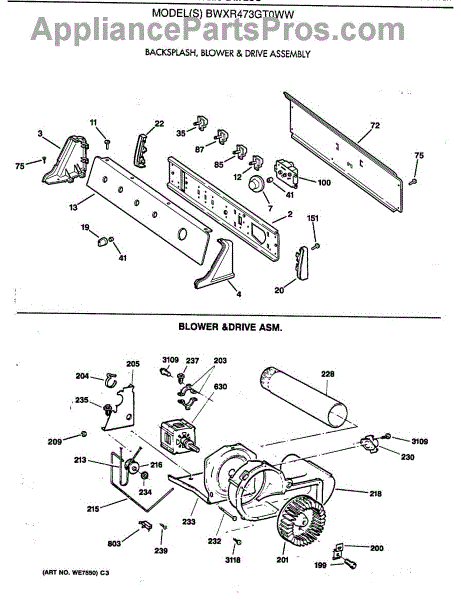 The Blower Wheel is an OEM replacement part for GE dryers. It has a role in the air circulation within the dryer, aiding in the even and efficient drying of clothes. The blower wheel, connected to the motor, helps in expelling the moist air out of the dryer through the exhaust vent during the drying cycle. Causes of a malfunctioning blower wheel are typically wear and tear from regular use, the accumulation of lint or debris, or damage to the wheel’s fins or central hub, which can impact its rotation and air circulation capability. Symptoms of a bad Blower Wheel include: