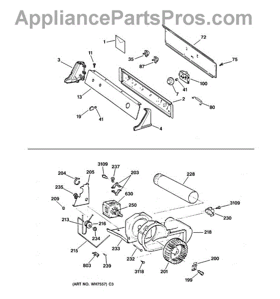 The Blower Wheel is an OEM replacement part for GE dryers. It has a role in the air circulation within the dryer, aiding in the even and efficient drying of clothes. The blower wheel, connected to the motor, helps in expelling the moist air out of the dryer through the exhaust vent during the drying cycle. Causes of a malfunctioning blower wheel are typically wear and tear from regular use, the accumulation of lint or debris, or damage to the wheel’s fins or central hub, which can impact its rotation and air circulation capability. Symptoms of a bad Blower Wheel include: