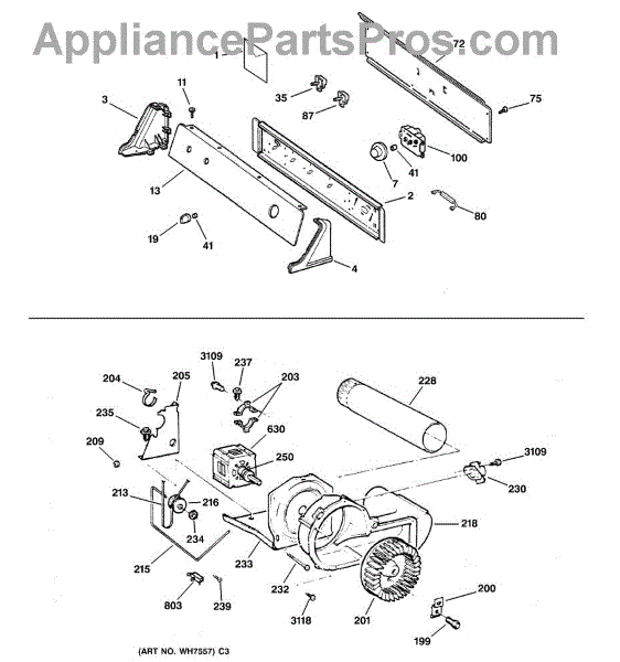 The Blower Wheel is an OEM replacement part for GE dryers. It has a role in the air circulation within the dryer, aiding in the even and efficient drying of clothes. The blower wheel, connected to the motor, helps in expelling the moist air out of the dryer through the exhaust vent during the drying cycle. Causes of a malfunctioning blower wheel are typically wear and tear from regular use, the accumulation of lint or debris, or damage to the wheel’s fins or central hub, which can impact its rotation and air circulation capability. Symptoms of a bad Blower Wheel include: