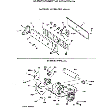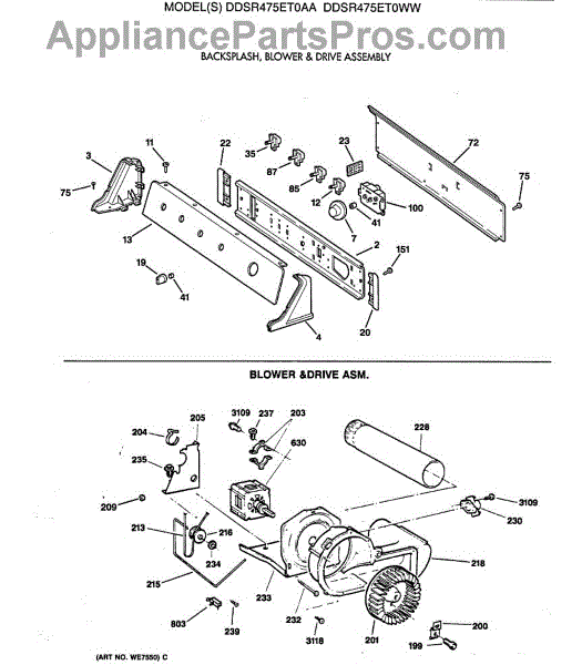 The Blower Wheel is an OEM replacement part for GE dryers. It has a role in the air circulation within the dryer, aiding in the even and efficient drying of clothes. The blower wheel, connected to the motor, helps in expelling the moist air out of the dryer through the exhaust vent during the drying cycle. Causes of a malfunctioning blower wheel are typically wear and tear from regular use, the accumulation of lint or debris, or damage to the wheel’s fins or central hub, which can impact its rotation and air circulation capability. Symptoms of a bad Blower Wheel include: