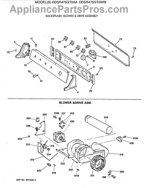The Blower Wheel is an OEM replacement part for GE dryers. It has a role in the air circulation within the dryer, aiding in the even and efficient drying of clothes. The blower wheel, connected to the motor, helps in expelling the moist air out of the dryer through the exhaust vent during the drying cycle. Causes of a malfunctioning blower wheel are typically wear and tear from regular use, the accumulation of lint or debris, or damage to the wheel’s fins or central hub, which can impact its rotation and air circulation capability. Symptoms of a bad Blower Wheel include: