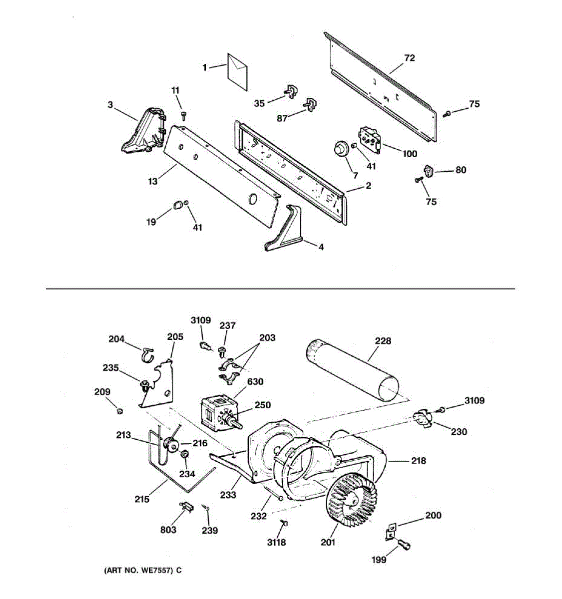The Blower Wheel is an OEM replacement part for GE dryers. It has a role in the air circulation within the dryer, aiding in the even and efficient drying of clothes. The blower wheel, connected to the motor, helps in expelling the moist air out of the dryer through the exhaust vent during the drying cycle. Causes of a malfunctioning blower wheel are typically wear and tear from regular use, the accumulation of lint or debris, or damage to the wheel’s fins or central hub, which can impact its rotation and air circulation capability. Symptoms of a bad Blower Wheel include: