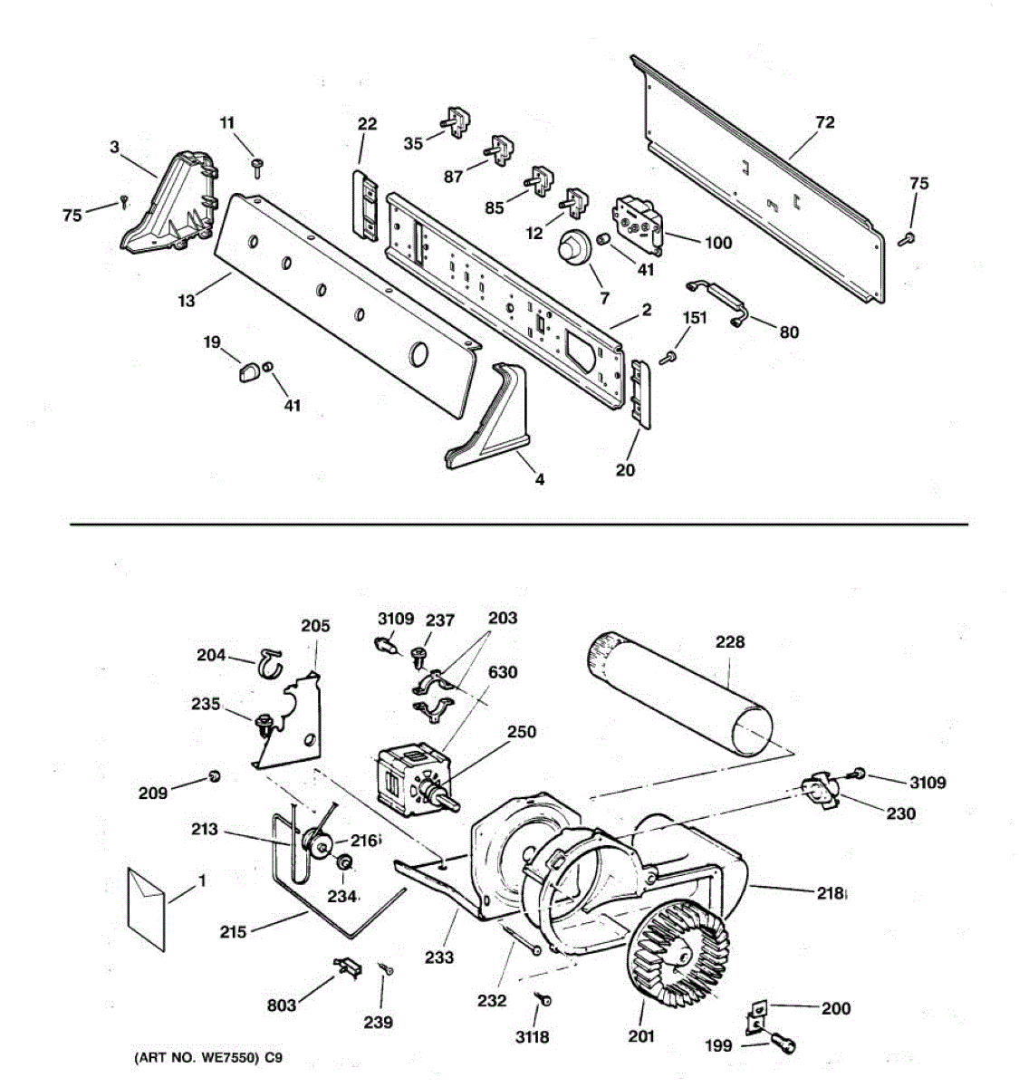 The Blower Wheel is an OEM replacement part for GE dryers. It has a role in the air circulation within the dryer, aiding in the even and efficient drying of clothes. The blower wheel, connected to the motor, helps in expelling the moist air out of the dryer through the exhaust vent during the drying cycle. Causes of a malfunctioning blower wheel are typically wear and tear from regular use, the accumulation of lint or debris, or damage to the wheel’s fins or central hub, which can impact its rotation and air circulation capability. Symptoms of a bad Blower Wheel include: