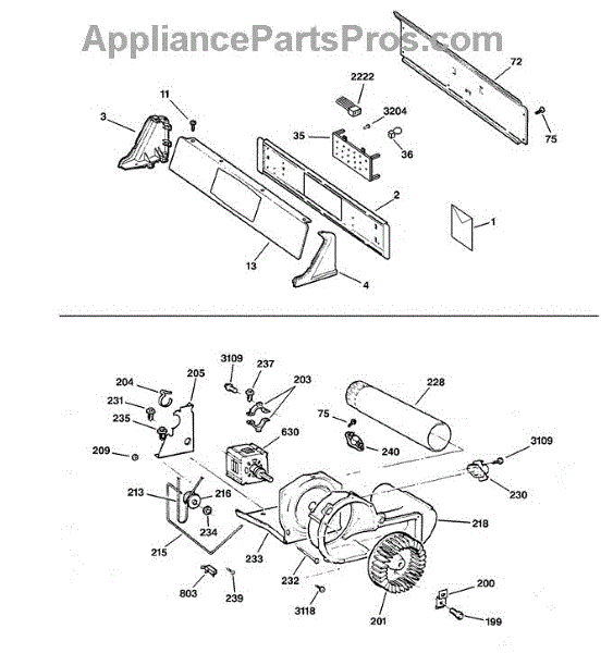 Parts for Ge DNSB514GB0WW: Backsplash, Blower & Drive Assembly Parts