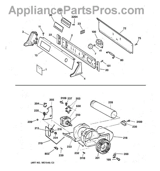 The Blower Wheel is an OEM replacement part for GE dryers. It has a role in the air circulation within the dryer, aiding in the even and efficient drying of clothes. The blower wheel, connected to the motor, helps in expelling the moist air out of the dryer through the exhaust vent during the drying cycle. Causes of a malfunctioning blower wheel are typically wear and tear from regular use, the accumulation of lint or debris, or damage to the wheel’s fins or central hub, which can impact its rotation and air circulation capability. Symptoms of a bad Blower Wheel include: