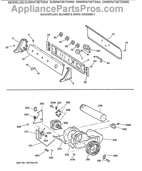The Blower Wheel is an OEM replacement part for GE dryers. It has a role in the air circulation within the dryer, aiding in the even and efficient drying of clothes. The blower wheel, connected to the motor, helps in expelling the moist air out of the dryer through the exhaust vent during the drying cycle. Causes of a malfunctioning blower wheel are typically wear and tear from regular use, the accumulation of lint or debris, or damage to the wheel’s fins or central hub, which can impact its rotation and air circulation capability. Symptoms of a bad Blower Wheel include: